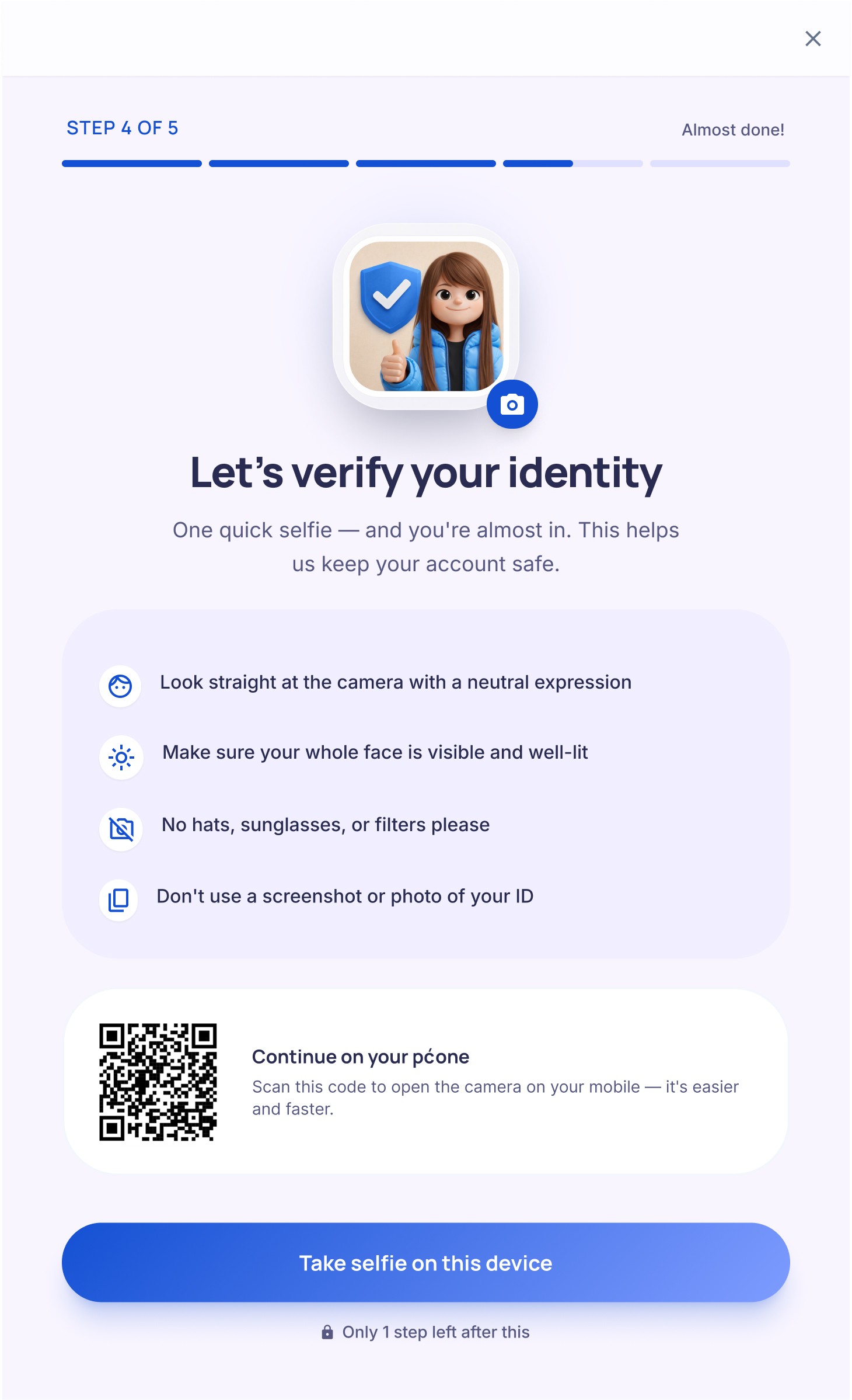 A screen before the process explaining why KYC protects their account — not just threatening limits.