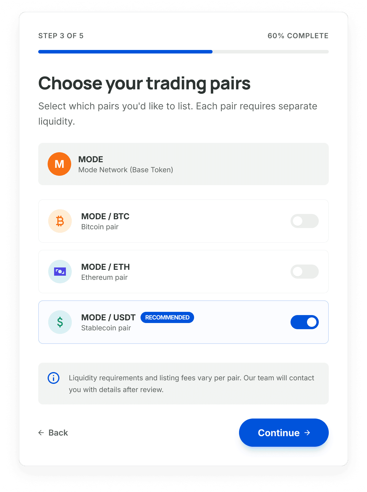 I worked with the sales team and marketing to map the full listing process — every step, every bottleneck, every document. Then designed an automated flow: token projects apply directly through a structured form, submit required documents, go through verification, get listed.