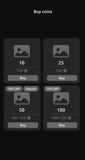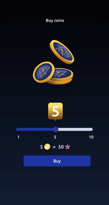 I analyzed the existing purchase flow. Users selected the amount of in-game currency using a slider limited to 1–10 coins, followed by a confirmation step.